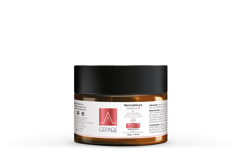 Renovateurs Glicólico 5 es una crema facial, formulada con un 5% de ácido glicólico (pH 3,5). El ácido glicólico tiene la molécula más pequeña de todos los AHAs (alfa hidroxiácidos) lo que le permite una penetración más profunda y rápida. Esta capacidad lo hace más efectivo como exfoliante. Su concentración moderada al 5% y la asociación con Lipomoist™ le confieren un alto poder hidratante. Su fórmula contiene, además, bisabolol para ayudar a disminuir la irritación, si la hubiera. Estimula el proceso de renovación celular cutánea. Hidrata y mejora la elasticidad. Aporta luminosidad y brillo. Unifica el tono y contribuye a difuminar manchas. Retexturiza y mejora la superficie de la piel. Atenúa arrugas y líneas de expresión