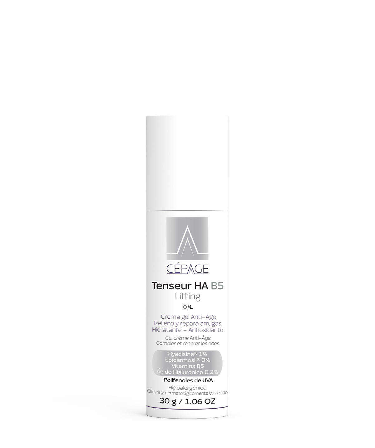 Su fórmula contiene activos innovadores, exclusivos y sinérgicos: Hyadisine® 1%, activo biotecnológico “hyaluronic like” que brinda un efecto de relleno inmediato. Epidermosil® 3% que combina Silicio Orgánico con ácido hialurónico de bajo peso molecular potenciado con Ácido hialurónico 0,2% de alto peso molecular. Contiene además vitamina B5 que repara y protege la piel. Estimula la regeneración y la resistencia de la piel. Esta asociación brinda un efecto Lifting inmediato y duradero. Rellena e hidrata 24 hs. Gracias a nuestros exclusivos Polifenoles de UVA posee un alto efecto antioxidante. La piel lucirá alisada, revitalizada y rejuvenecida.